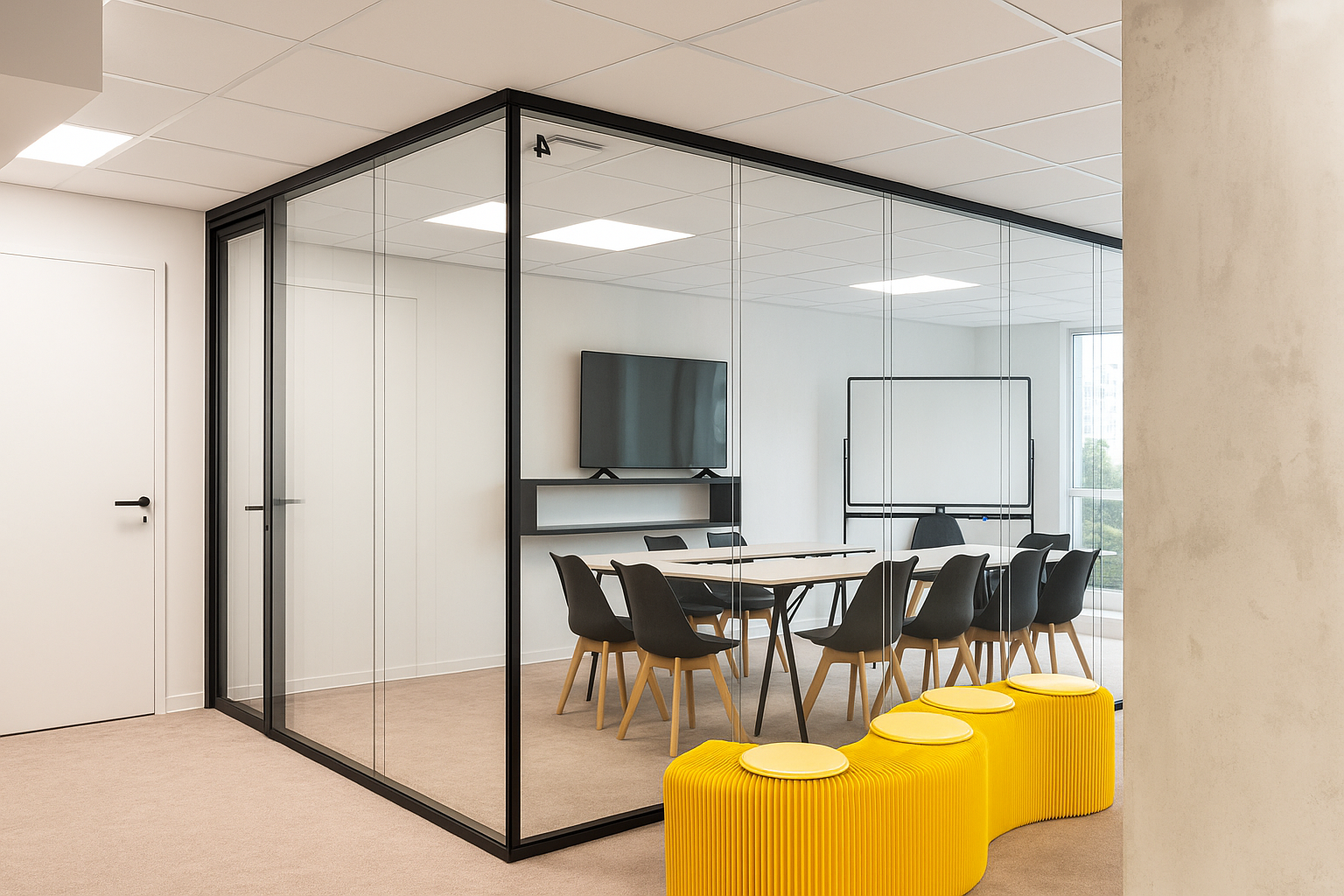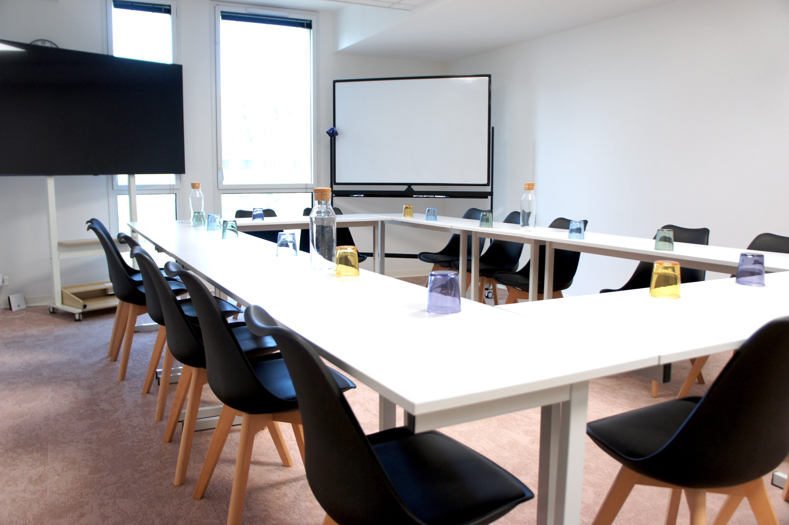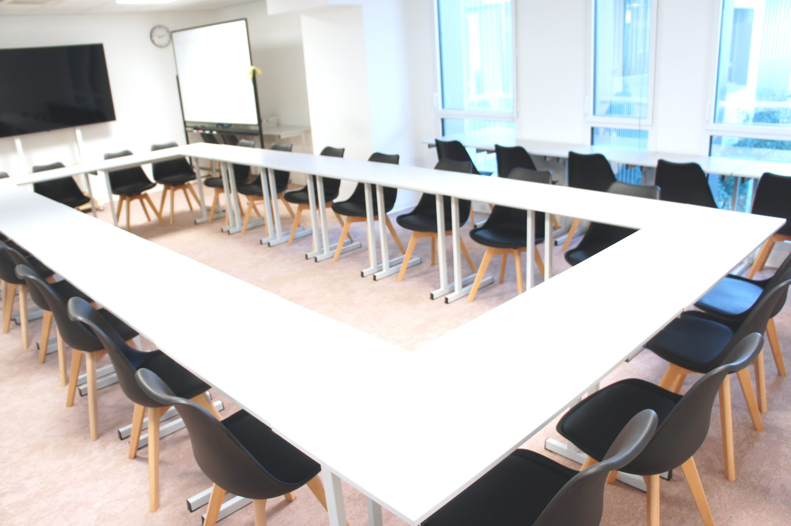 Conçue pour accueillir vos équipes dans les meilleures conditions, cette très grande salle de réunion allie confort, design et fonctionnalité